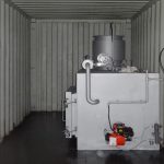 The containerized mobile incinerator mounted in ISO container before leave factory, pre-installation, no incineration house build construction, movable by truck and ultraviolet lamp sterilization inside.